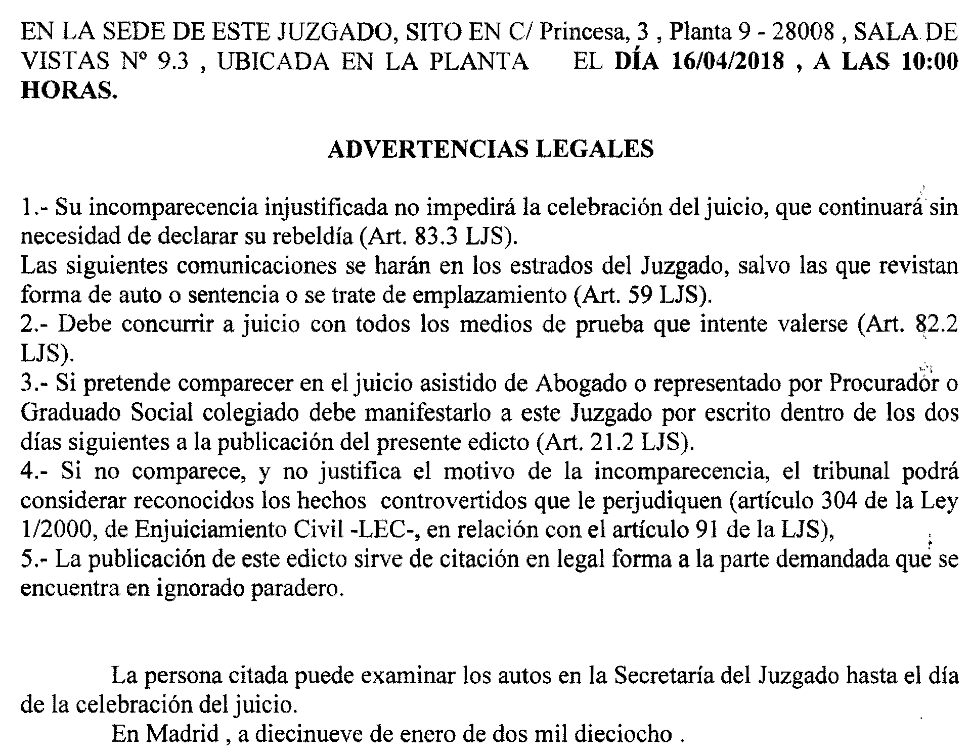 JUZGADO DE LO SOCIAL DE MADRID NÚMERO 35
