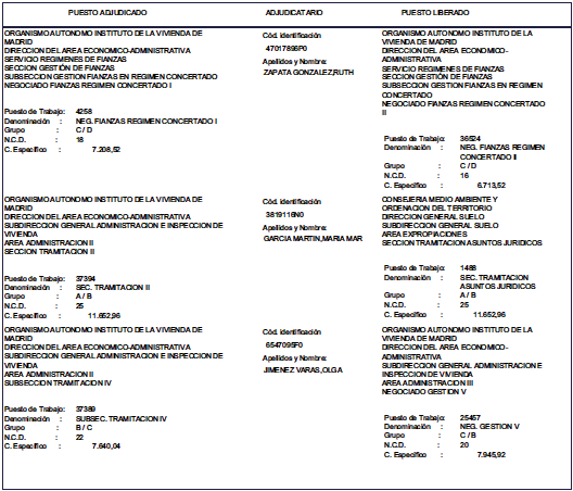 Por Orden de 20 de septiembre de 2011, de la Consejera de Medio Ambiente y Ordenación del Territorio (BOLETÍN OFICIAL DE LA COMUNIDAD DE MADRID de 3 de noviembre de 2011), se aprobó convocatoria pública para la provisión de puestos de trabajo vacantes en la citada Consejería (Instituto de la Vivienda de Madrid) por el procedimiento de Concurso de Méritos.