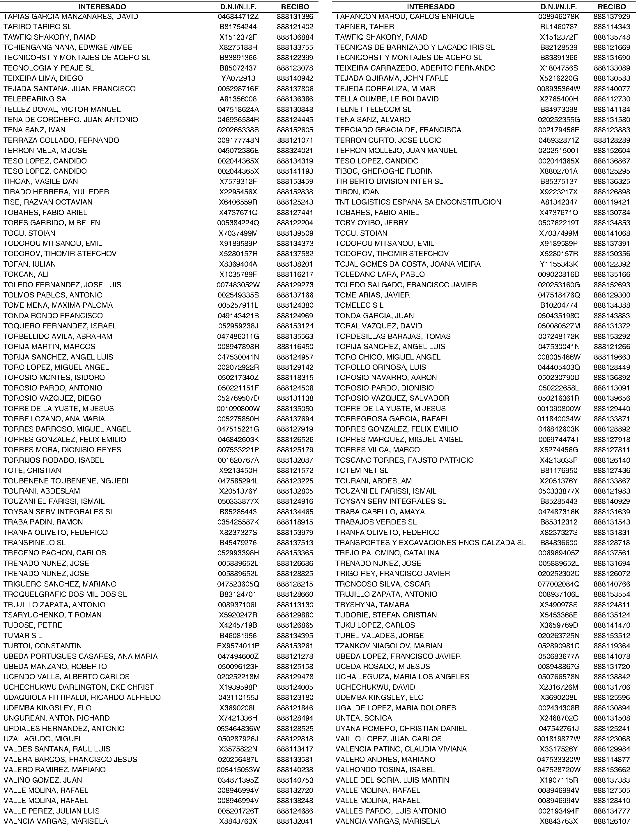 Intentada por dos veces la notificación a los interesados, o a sus representantes, de los actos de notificación de la providencia de apremio y de requerimiento de bienes que se relacionan a continuación, no ha sido posible por causas no imputables a la Administración. Por ello, se requiere su comparecencia para efectuar dicha notificación, de acuerdo con lo establecido en el artículo 112 de la Ley 58/2003, de 17 de diciembre, General Tributaria.