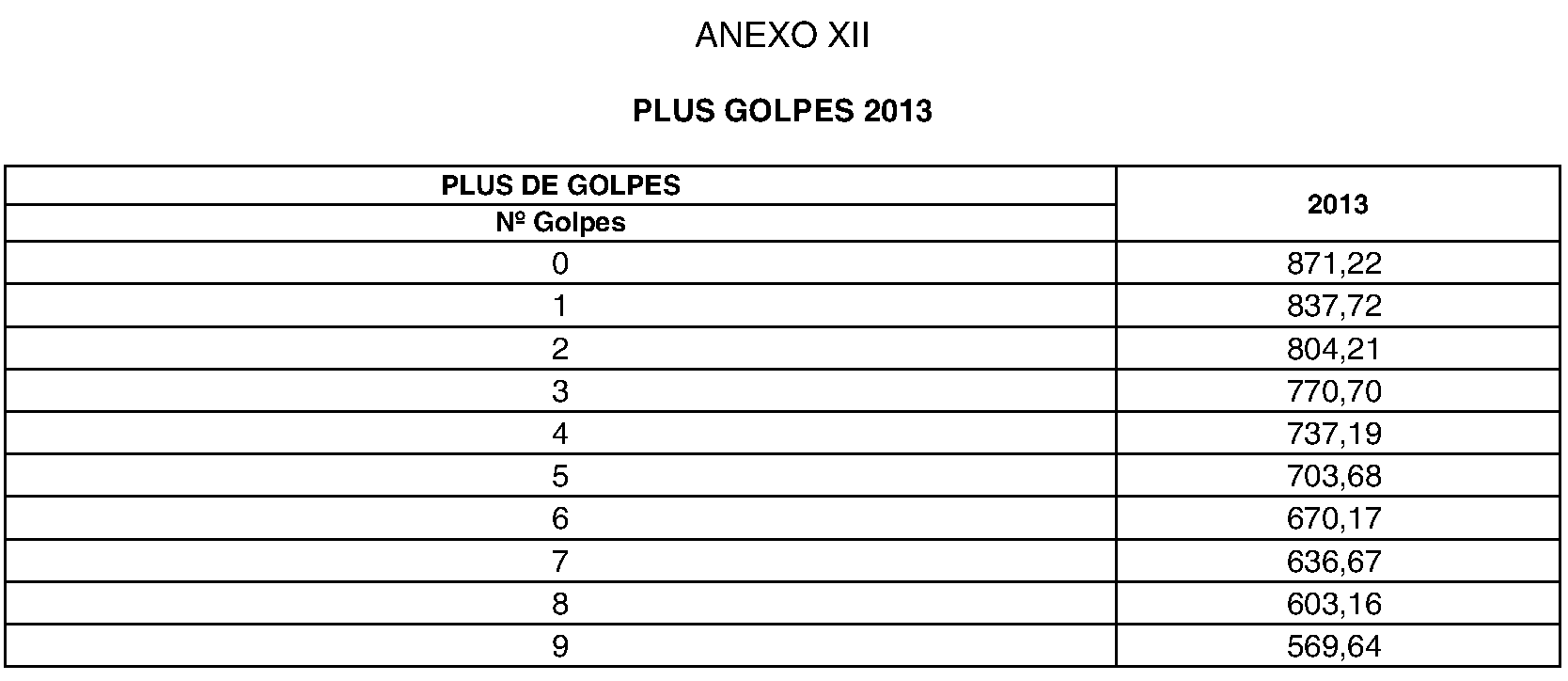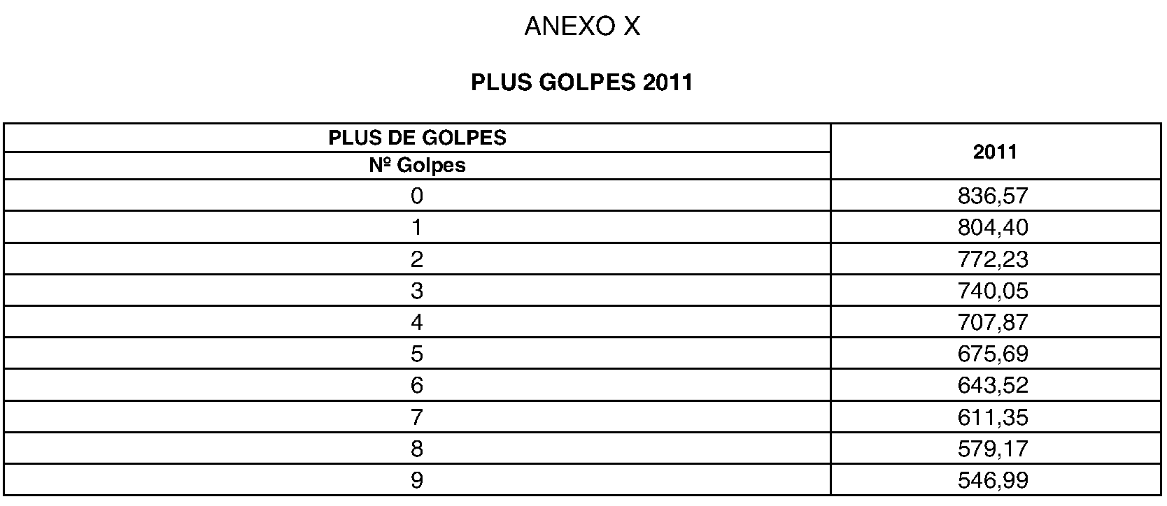 El importe del plus de especialidad dependerá del número de golpes a aeronaves que se produzcan en los doce meses anteriores al del mes de cómputo, de acuerdo con la escala reflejada en los Anexos IX, X, XI y XII del presente Convenio para cada año de vigencia.