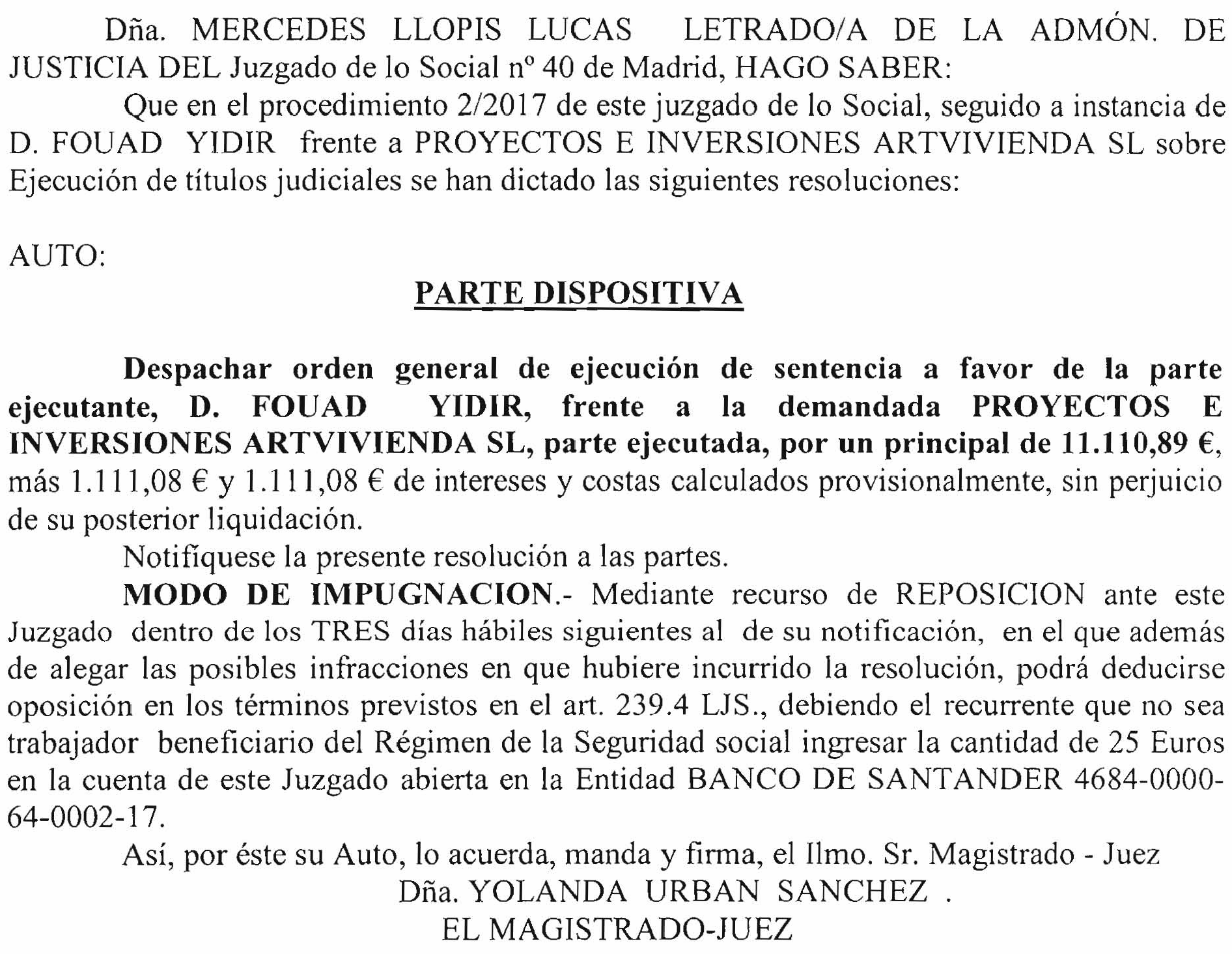 JUZGADO DE LO SOCIAL DE MADRID NÚMERO 40