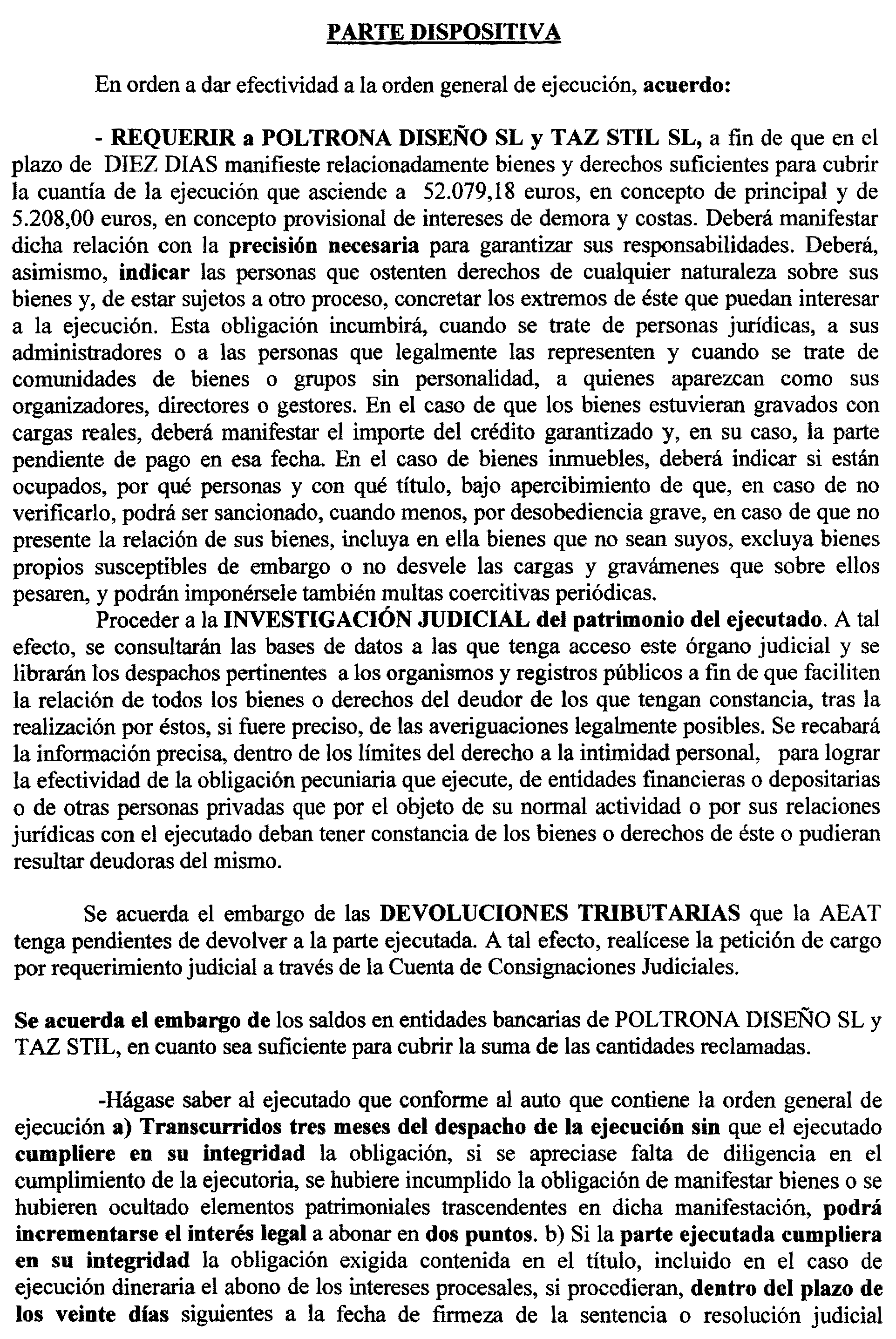 Móstoles número 2. Ejecución 2 de 2017, notificación a Poltrona Diseño, S.L., y Taz Stil, S. L.