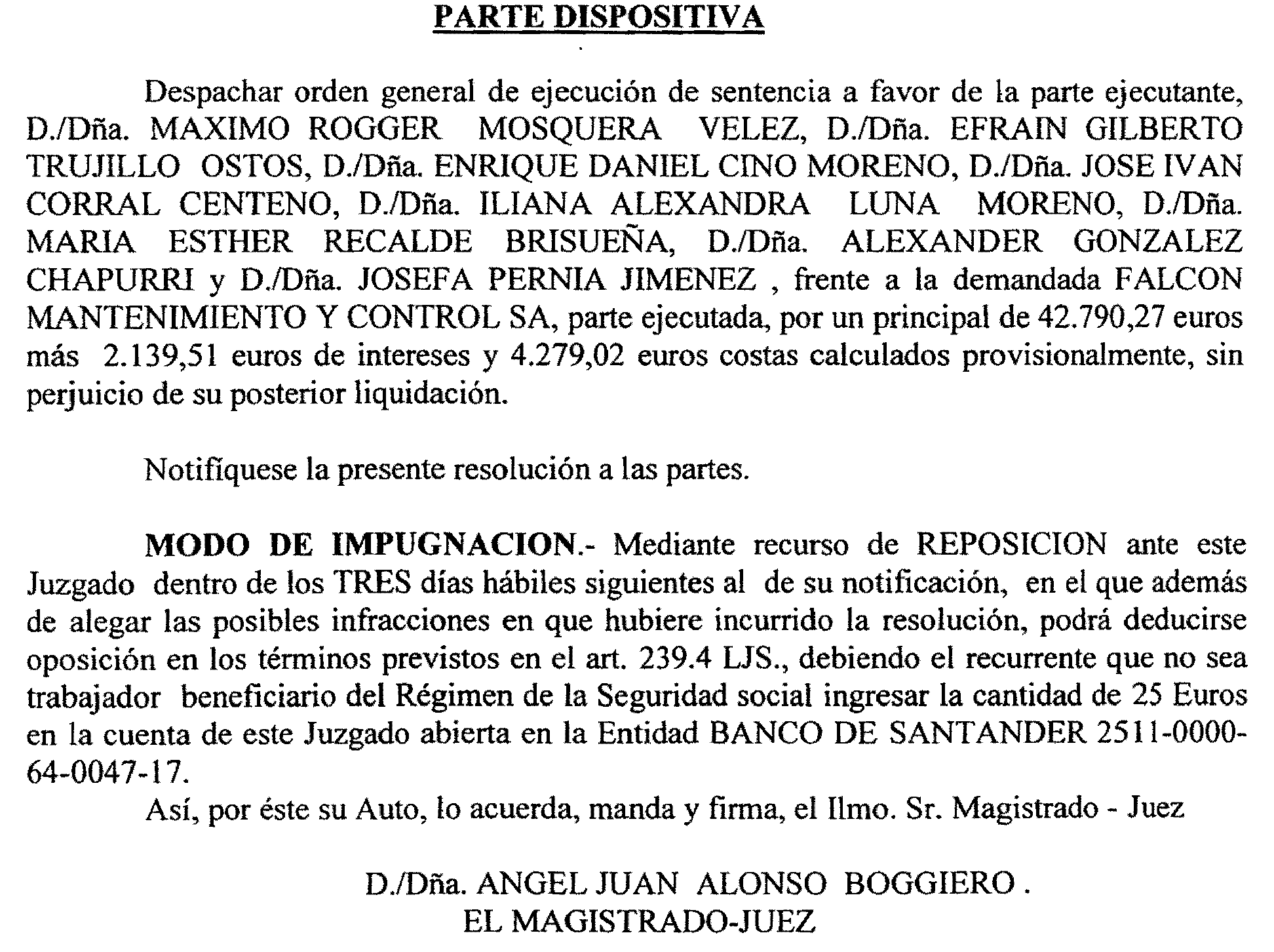 Madrid número 13. Ejecución 42 de 2017, notificación a Falcon Mantenimiento y Control, S. A.