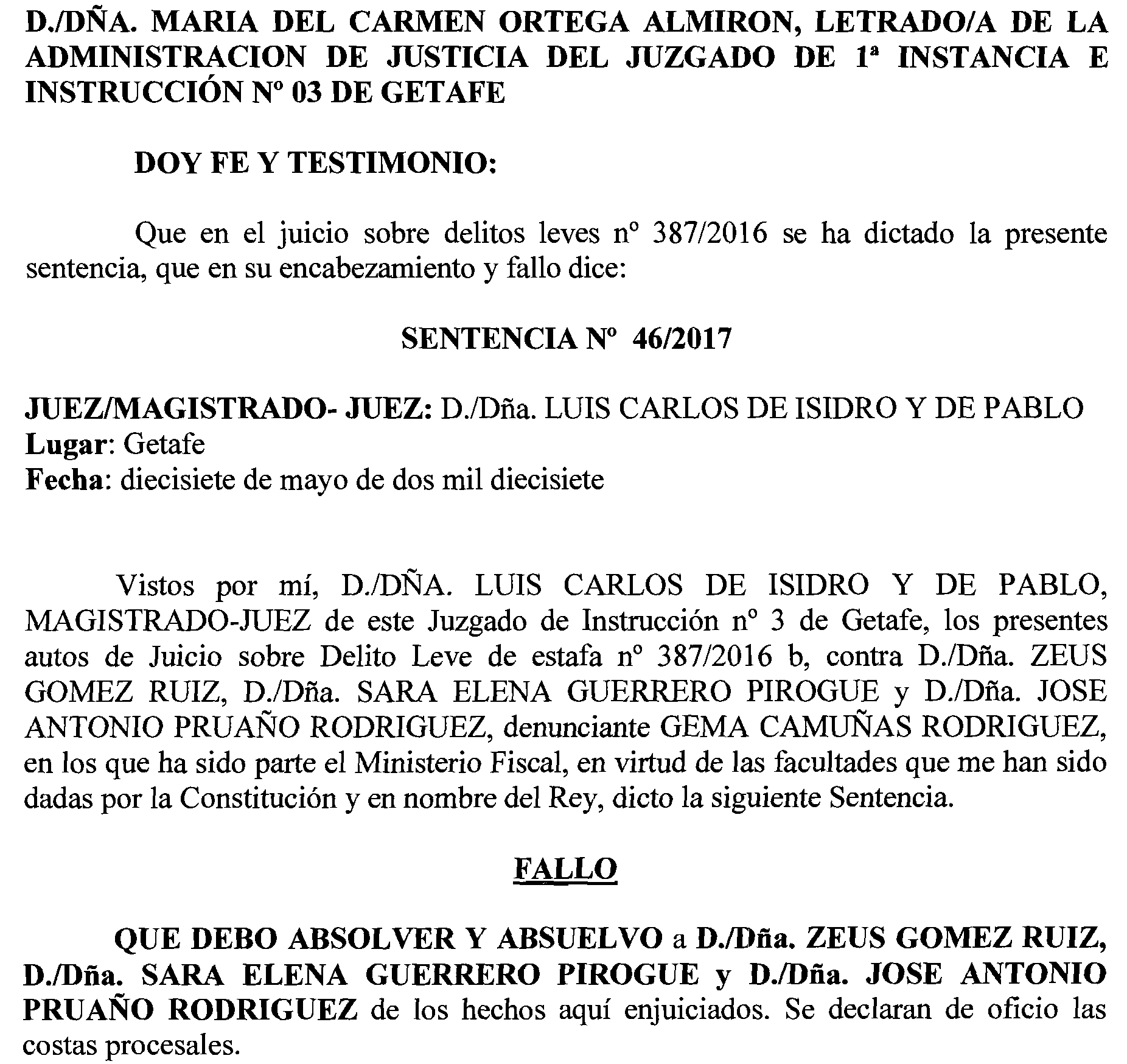JUZGADO DE PRIMERA INSTANCIA E INSTRUCCIÓN DE GETAFE NÚMERO 3
