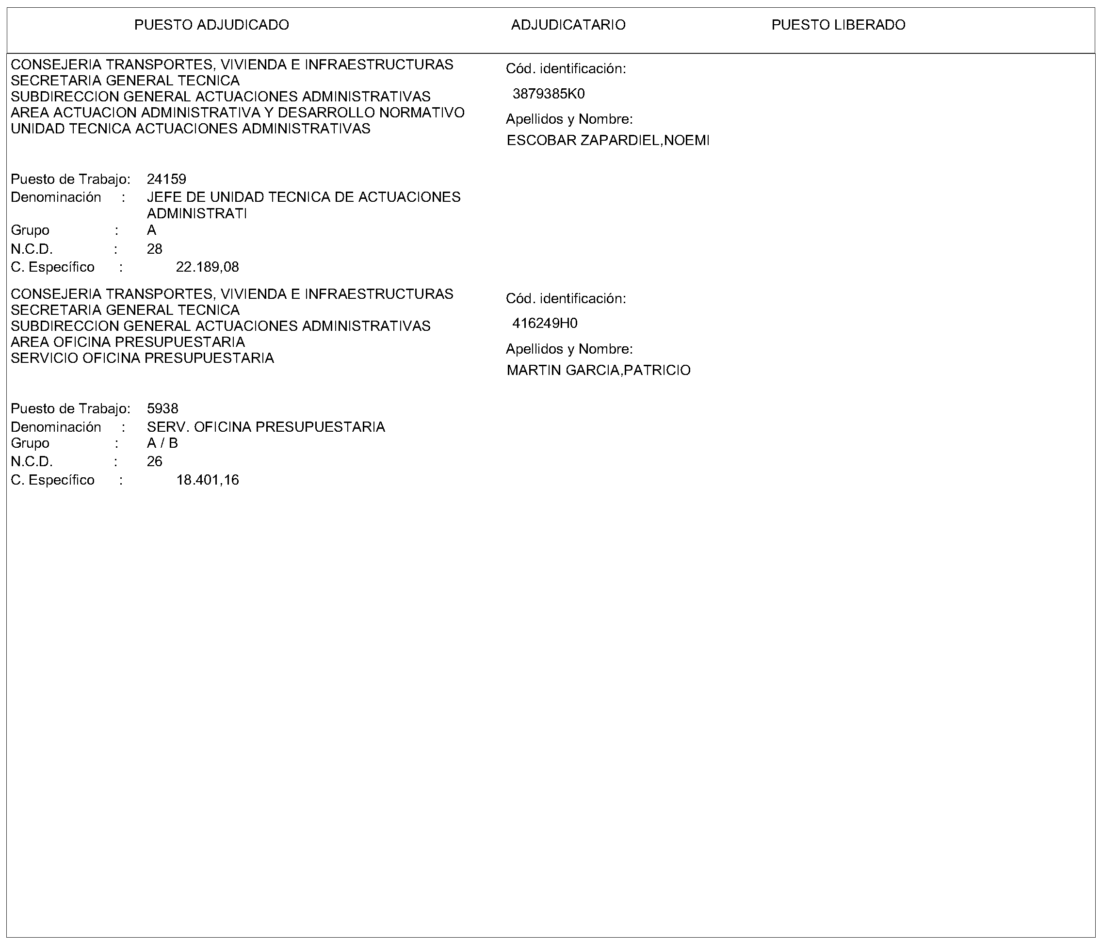 CONSEJERÍA DE TRANSPORTES, VIVIENDA E INFRAESTRUCTURAS
