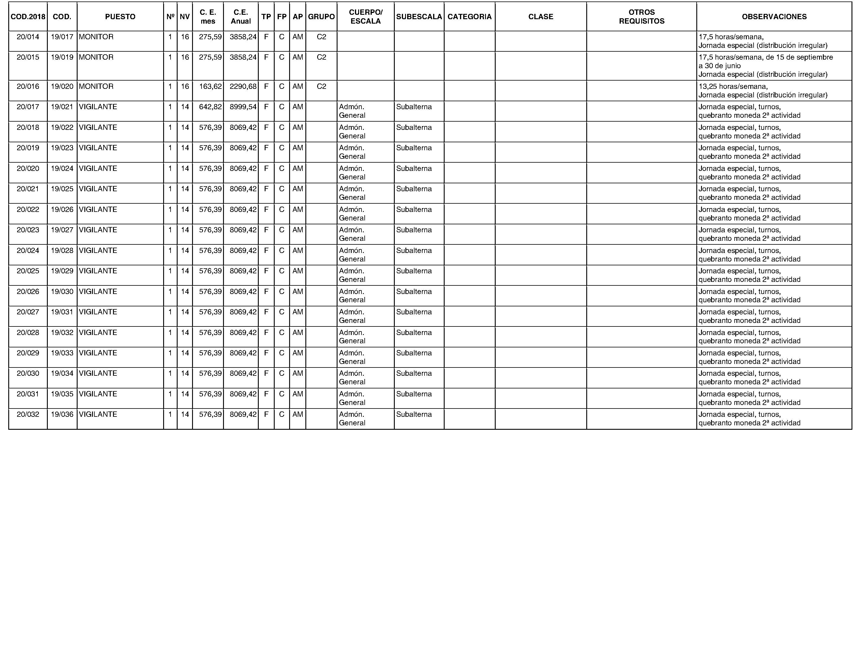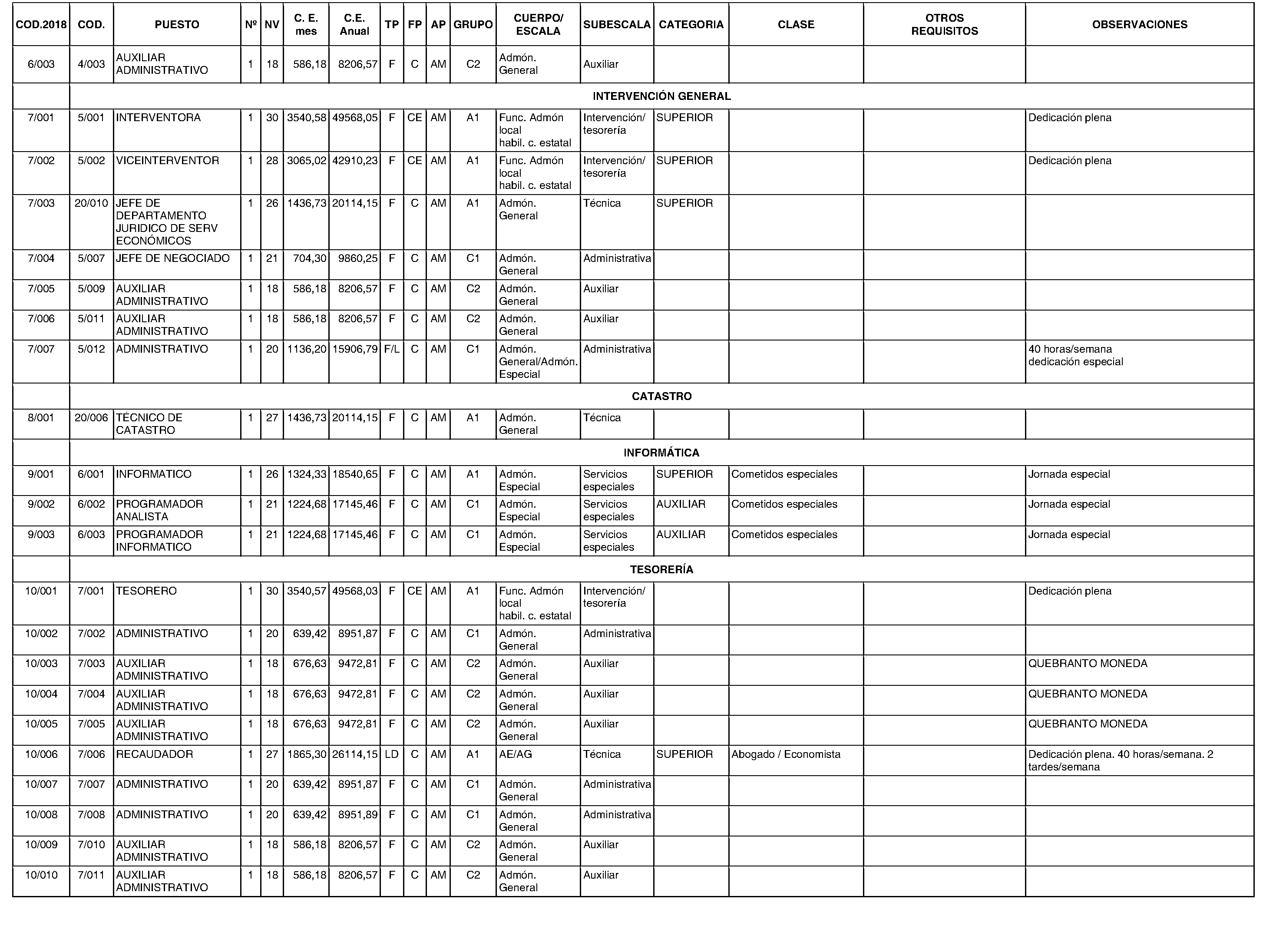 Colmenar Viejo. Personal. Relación puestos de trabajo