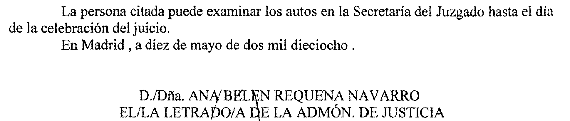 Madrid número 8. Procedimiento 1.056 de 2017, notificación a José Hugo Barze Mendigoechea y otros